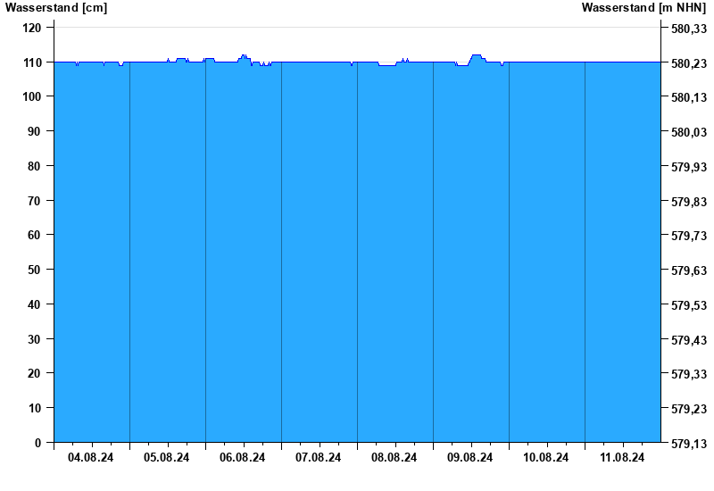 Der Pegel wird durch Baumaßnahmen unterhalb beeinflusst (Rückstau). Entsprechend sind die Abflusswerte nicht korrekt