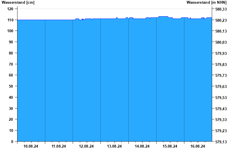 Der Pegel wird durch Baumaßnahmen unterhalb beeinflusst (Rückstau). Entsprechend sind die Abflusswerte nicht korrekt