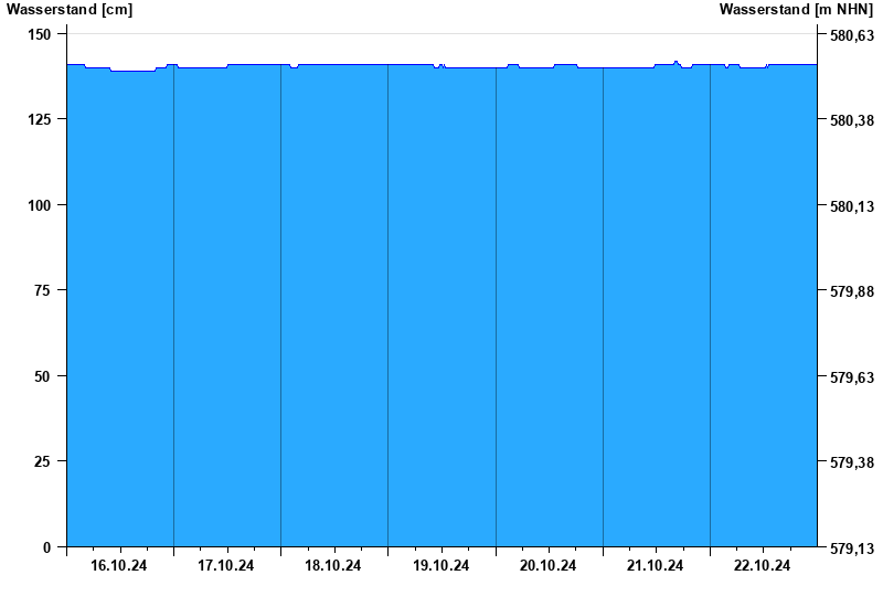 Der Pegel wird durch Baumaßnahmen unterhalb beeinflusst (Rückstau). Entsprechend sind die Abflusswerte nicht korrekt