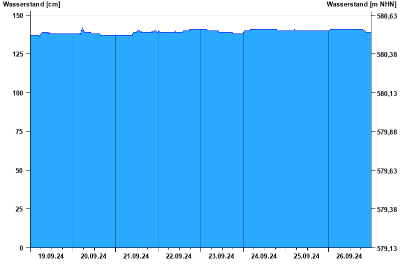 Der Pegel wird durch Baumaßnahmen unterhalb beeinflusst (Rückstau). Entsprechend sind die Abflusswerte nicht korrekt
