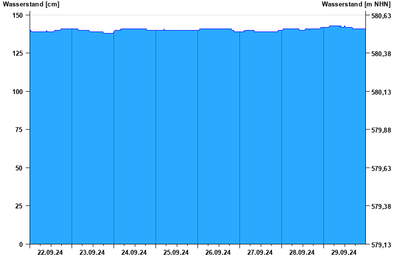 Der Pegel wird durch Baumaßnahmen unterhalb beeinflusst (Rückstau). Entsprechend sind die Abflusswerte nicht korrekt