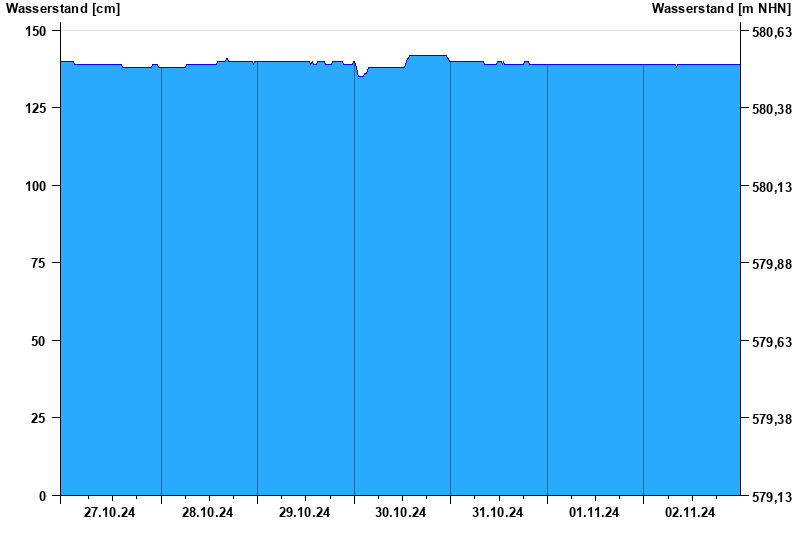 Der Pegel wird durch Baumaßnahmen unterhalb beeinflusst (Rückstau). Entsprechend sind die Abflusswerte nicht korrekt
