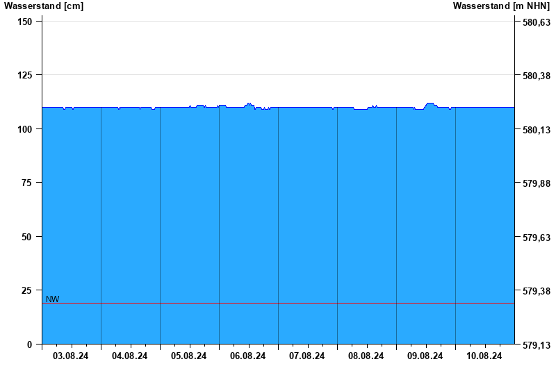 Der Pegel wird durch Baumaßnahmen unterhalb beeinflusst (Rückstau). Entsprechend sind die Abflusswerte nicht korrekt