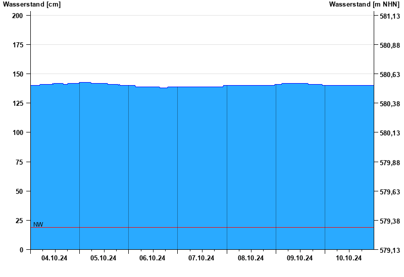 Der Pegel wird durch Baumaßnahmen unterhalb beeinflusst (Rückstau). Entsprechend sind die Abflusswerte nicht korrekt