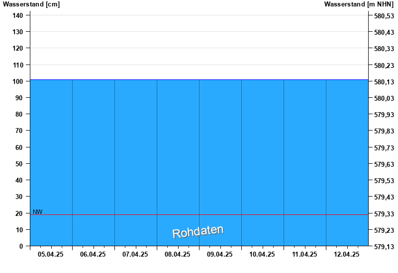 Der Pegel wird durch Baumaßnahmen unterhalb beeinflusst (Rückstau). Entsprechend sind die Abflusswerte nicht korrekt