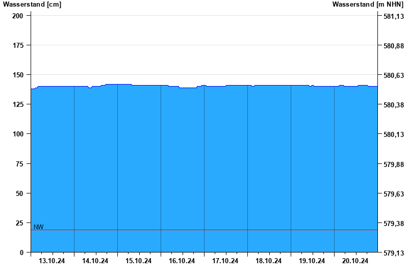 Der Pegel wird durch Baumaßnahmen unterhalb beeinflusst (Rückstau). Entsprechend sind die Abflusswerte nicht korrekt