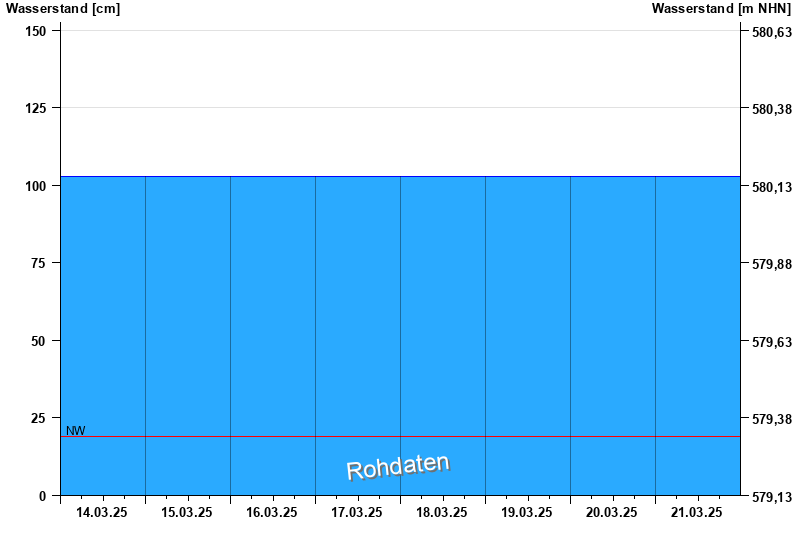 Der Pegel wird durch Baumaßnahmen unterhalb beeinflusst (Rückstau). Entsprechend sind die Abflusswerte nicht korrekt