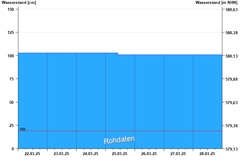 Der Pegel wird durch Baumaßnahmen unterhalb beeinflusst (Rückstau). Entsprechend sind die Abflusswerte nicht korrekt
