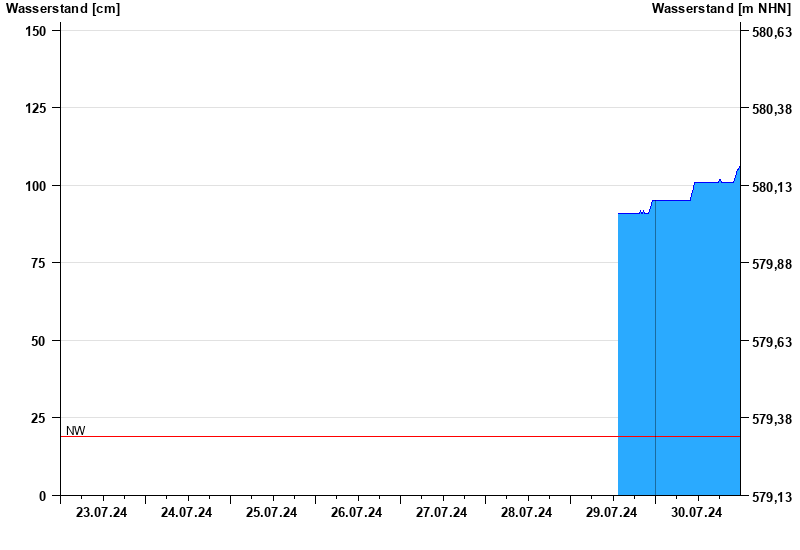 Der Pegel wird durch Baumaßnahmen unterhalb beeinflusst (Rückstau). Entsprechend sind die Abflusswerte nicht korrekt