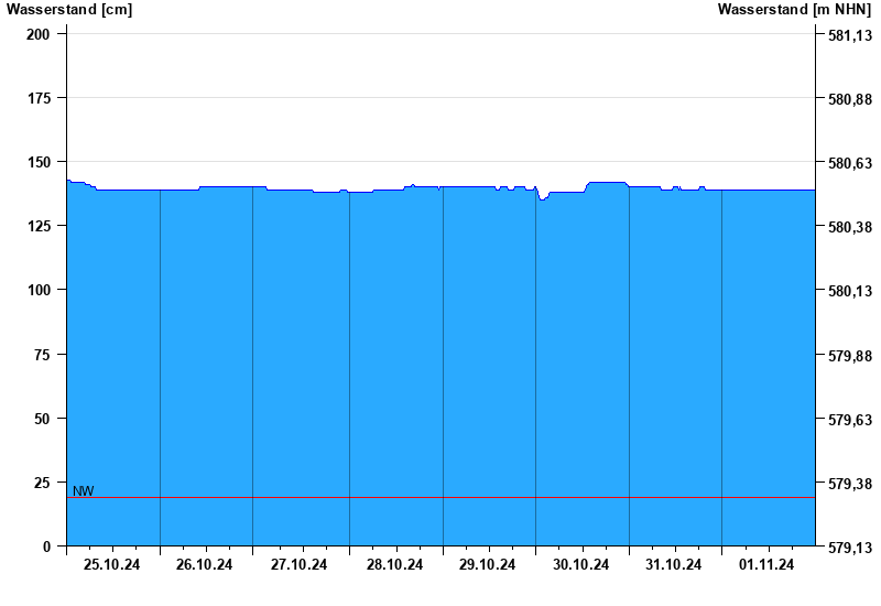 Der Pegel wird durch Baumaßnahmen unterhalb beeinflusst (Rückstau). Entsprechend sind die Abflusswerte nicht korrekt