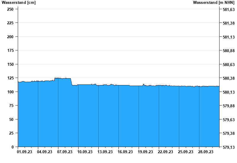 Der Pegel wird durch Baumaßnahmen unterhalb beeinflusst (Rückstau). Entsprechend sind die Abflusswerte nicht korrekt