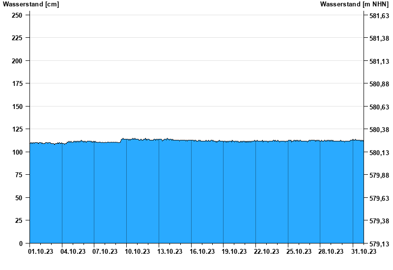 Der Pegel wird durch Baumaßnahmen unterhalb beeinflusst (Rückstau). Entsprechend sind die Abflusswerte nicht korrekt