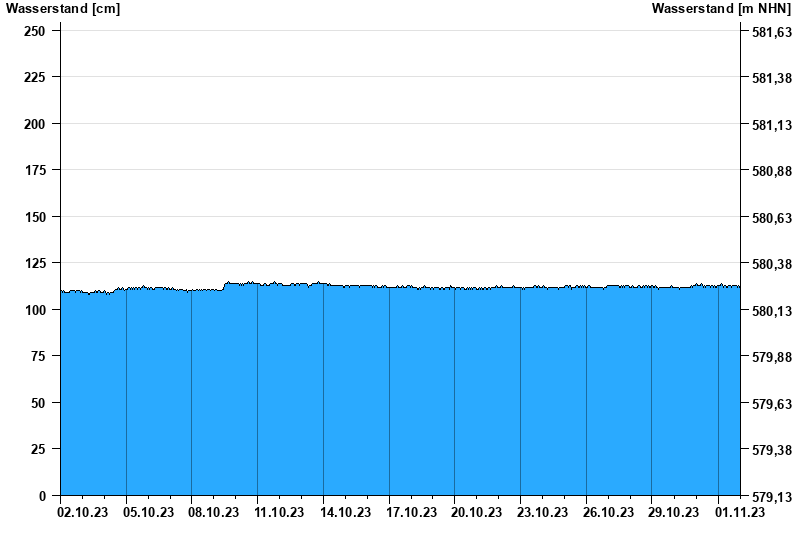 Der Pegel wird durch Baumaßnahmen unterhalb beeinflusst (Rückstau). Entsprechend sind die Abflusswerte nicht korrekt