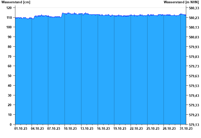 Der Pegel wird durch Baumaßnahmen unterhalb beeinflusst (Rückstau). Entsprechend sind die Abflusswerte nicht korrekt