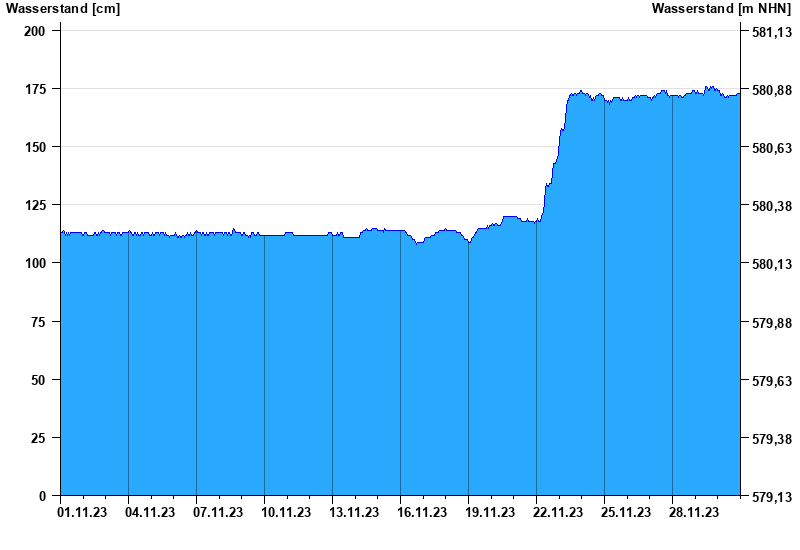 Der Pegel wird durch Baumaßnahmen unterhalb beeinflusst (Rückstau). Entsprechend sind die Abflusswerte nicht korrekt