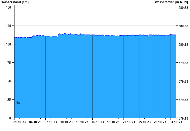 Der Pegel wird durch Baumaßnahmen unterhalb beeinflusst (Rückstau). Entsprechend sind die Abflusswerte nicht korrekt