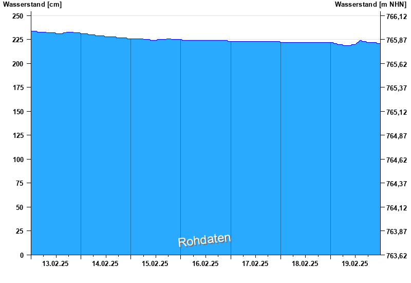 Störung wegen Stromversorgungsprobleme. Der Wasserstand wird durch starke Kiesumlagerungen beeinflusst. Der hier gezeigte Abfluss kann entsprechend stark vom tatsächlichen Abfluss abweichen.