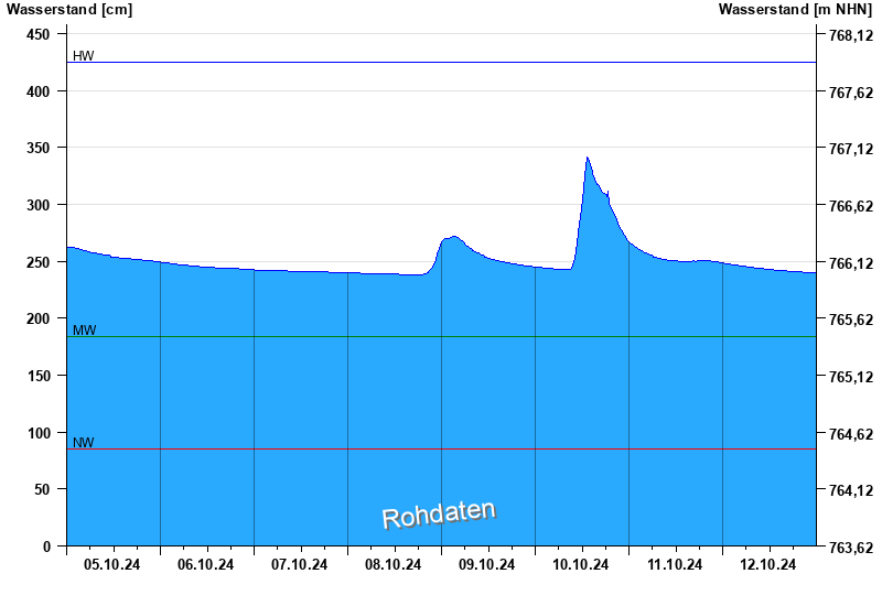 Störung wegen Stromversorgungsprobleme. Der Wasserstand wird durch starke Kiesumlagerungen beeinflusst. Der hier gezeigte Abfluss kann entsprechend stark vom tatsächlichen Abfluss abweichen.