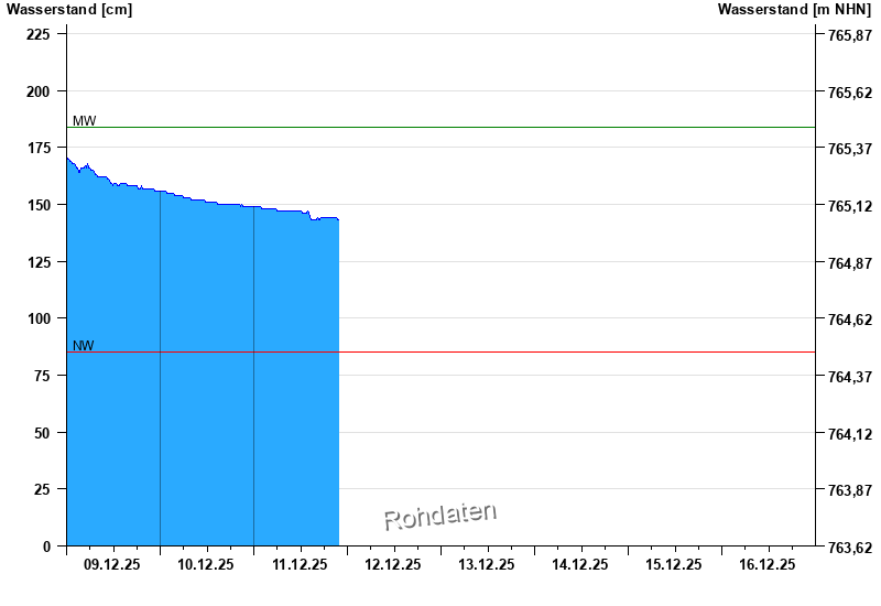 Störung wegen Stromversorgungsprobleme. Der Wasserstand wird durch starke Kiesumlagerungen beeinflusst. Der hier gezeigte Abfluss kann entsprechend stark vom tatsächlichen Abfluss abweichen.