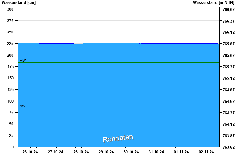 Störung wegen Stromversorgungsprobleme. Der Wasserstand wird durch starke Kiesumlagerungen beeinflusst. Der hier gezeigte Abfluss kann entsprechend stark vom tatsächlichen Abfluss abweichen.