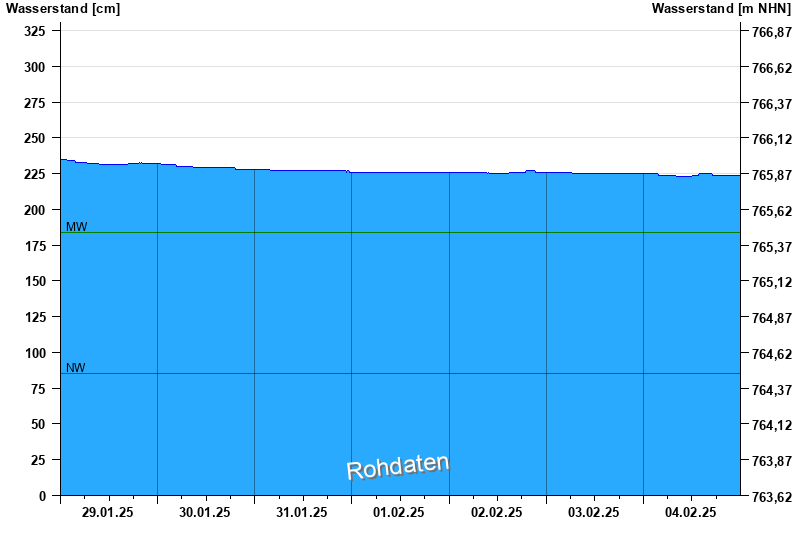 Störung wegen Stromversorgungsprobleme. Der Wasserstand wird durch starke Kiesumlagerungen beeinflusst. Der hier gezeigte Abfluss kann entsprechend stark vom tatsächlichen Abfluss abweichen.
