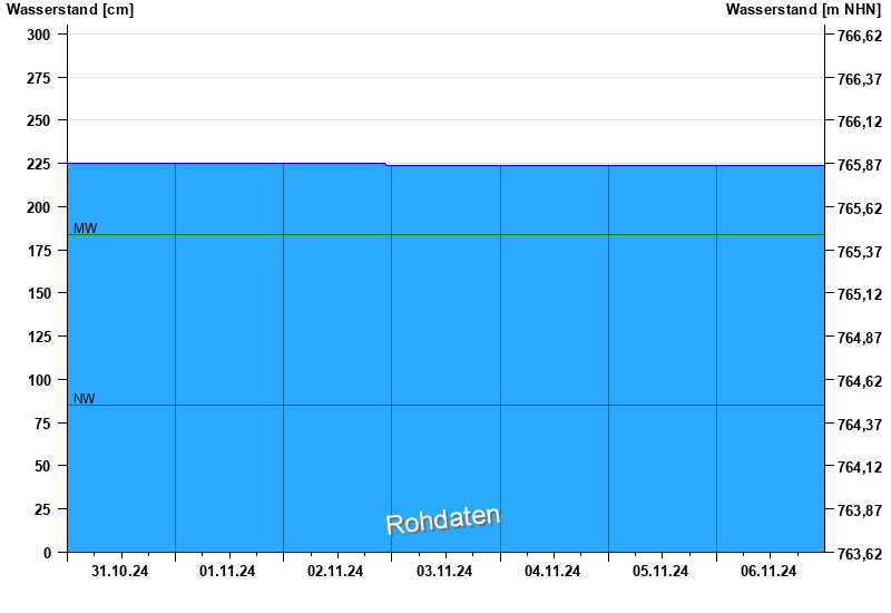 Störung wegen Stromversorgungsprobleme. Der Wasserstand wird durch starke Kiesumlagerungen beeinflusst. Der hier gezeigte Abfluss kann entsprechend stark vom tatsächlichen Abfluss abweichen.