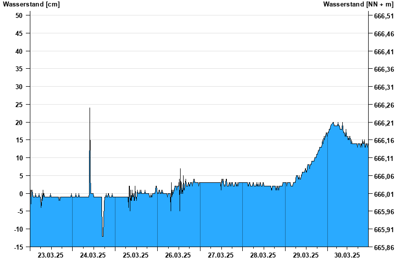Messwerte beeinflusst durch Kraftwerkssteuerung und Kiesumlagerungen. Kiesanlandungen können bei Niedrigwasser Trockenlegung der Messinstrumente bewirken.