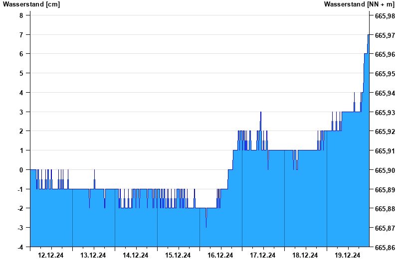 Messwerte beeinflusst durch Kraftwerkssteuerung und Kiesumlagerungen. Kiesanlandungen können bei Niedrigwasser Trockenlegung der Messinstrumente bewirken.
