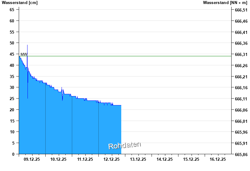 Messwerte beeinflusst durch Kraftwerkssteuerung und Kiesumlagerungen. Kiesanlandungen können bei Niedrigwasser Trockenlegung der Messinstrumente bewirken.