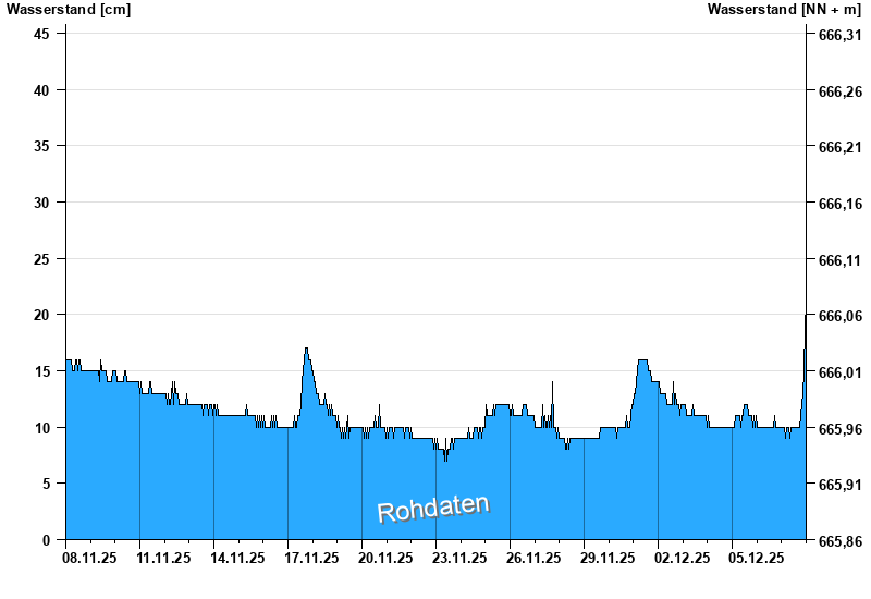 Messwerte beeinflusst durch Kraftwerkssteuerung und Kiesumlagerungen. Kiesanlandungen können bei Niedrigwasser Trockenlegung der Messinstrumente bewirken.