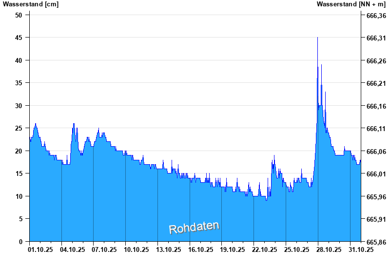 Messwerte beeinflusst durch Kraftwerkssteuerung und Kiesumlagerungen. Kiesanlandungen können bei Niedrigwasser Trockenlegung der Messinstrumente bewirken.