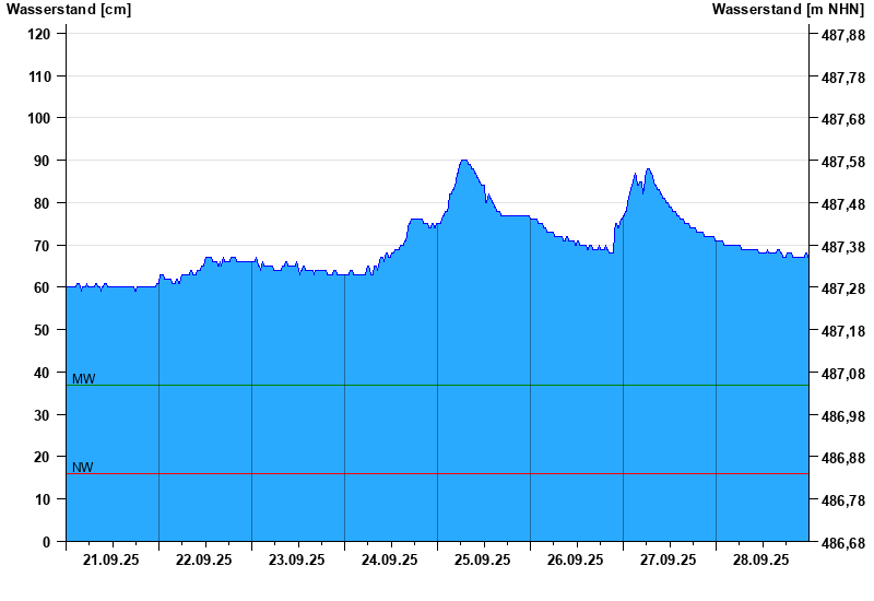 Abflussermittlung durch Veränderung im Pegelprofil gestört!