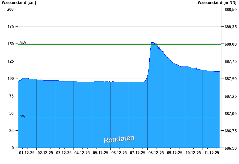 Waterlevel from 01.12.2025 to 11.12.2025