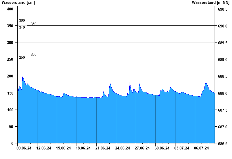 - 340 cm: Garmisch: Siedlung Loisachauen bedroht.