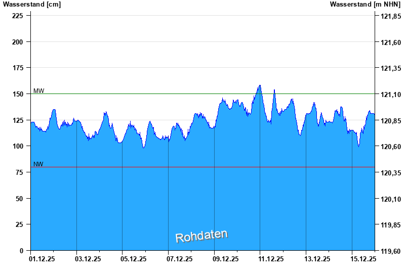 Ausgabe von Abflusswerten wegen Stauregelung erst ab W = 130 cm
