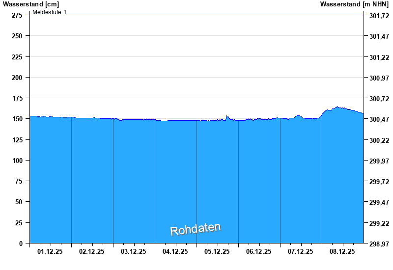 Pegelstand / Abfluss beeinflusst durch Biberbauten im Unterlauf.