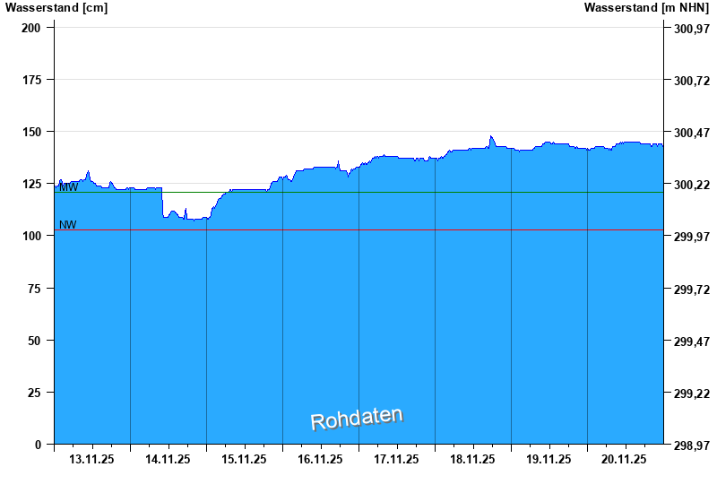 Pegelstand / Abfluss beeinflusst durch Biberbauten im Unterlauf.
