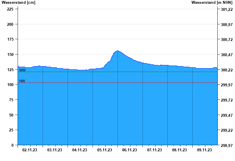 Pegelstand / Abfluss beeinflusst durch Biberbauten im Unterlauf.