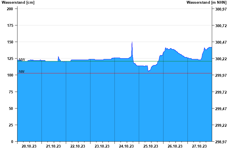 Pegelstand / Abfluss beeinflusst durch Biberbauten im Unterlauf.