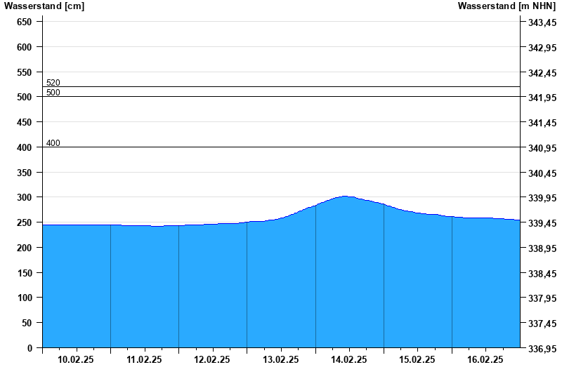 Waterlevel from 10.02.2025 to 16.02.2025| Date | Waterlevel [cm] |