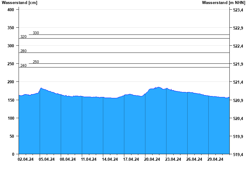 Waterlevel from 02.04.2024 to 01.05.2024| Date | Waterlevel [cm] |