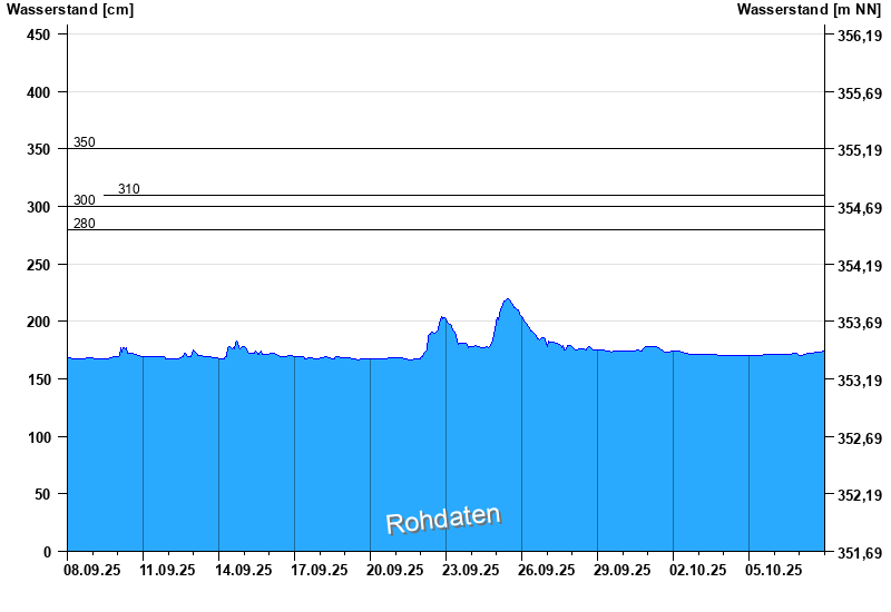 - 280 cm: Mühlstetten: Beginn der Ausuferung.