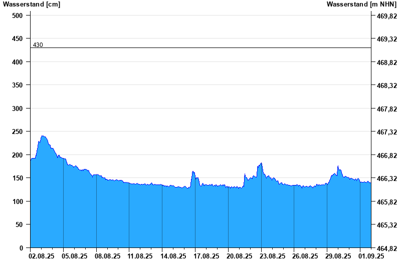 - 430 cm: Neu-Ulm: Beginn der Überflutung der Koppenwörth.