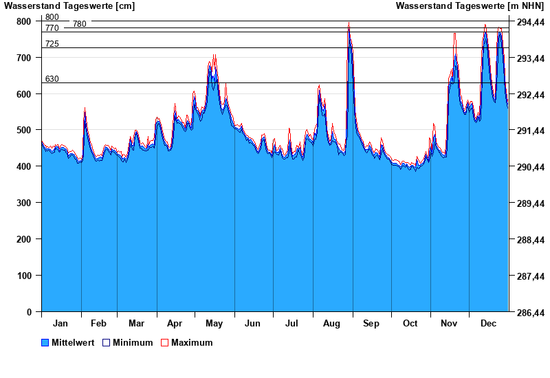 - 780 cm: Passau: Einstellung der Schifffahrt durch das Wasser- und Schifffahrtsamt