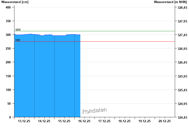 Ausgabe von Abflusswerten wegen Stauregelung erst ab W = 327 cm
