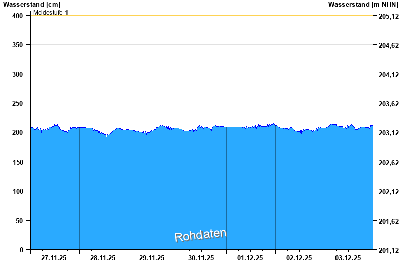 Ausgabe von Abflusswerten wegen Stauregelung erst ab W = 215 cm