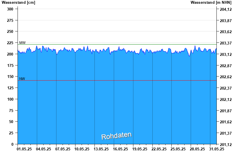 Ausgabe von Abflusswerten wegen Stauregelung erst ab W = 215 cm