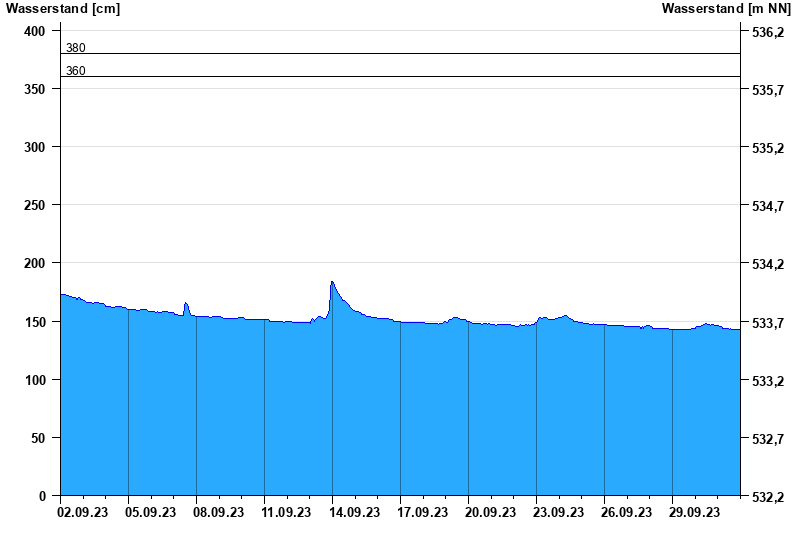 Waterlevel from 02.09.2023 to 01.10.2023| Date | Waterlevel [cm] |