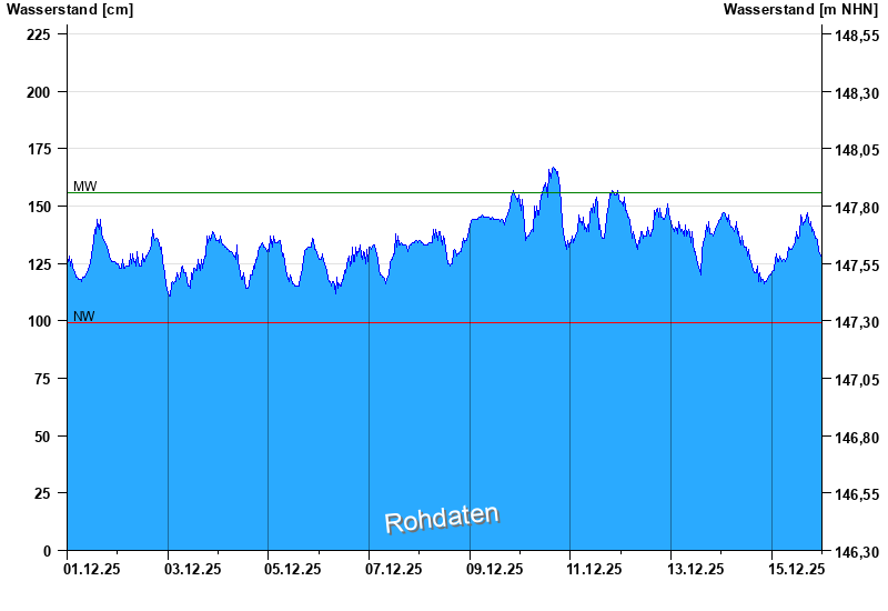 Ausgabe von Abflusswerten wegen Stauregelung erst ab W = 130 cm