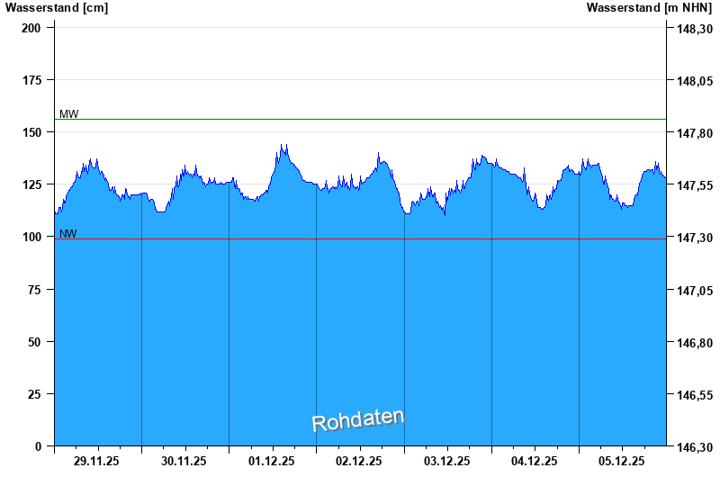 Ausgabe von Abflusswerten wegen Stauregelung erst ab W = 130 cm